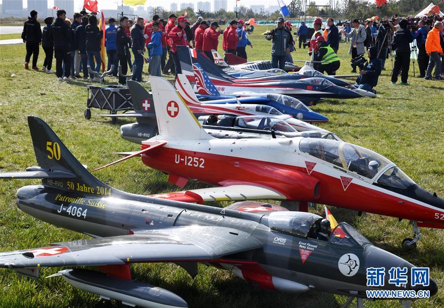 10月14日,各参赛队携模型飞机参加开幕式。 当日,2019世界喷气模型大会在山东省荣成市樱花湖体育公园开赛。来自14个国家和地区的50支队伍近百名航模选手将在七天的比赛中展开角逐。 新华社记者郭绪雷摄