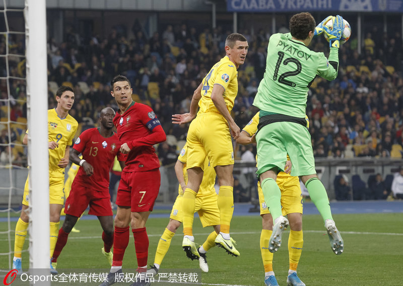 第75分钟,C罗小禁区内右侧抽射,被乌克兰门将封堵。