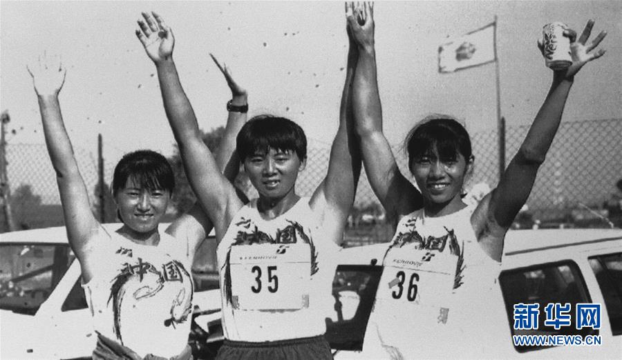 1995年9月12日,在罗马举行的第一届世界军人运动会军事五项比赛中,中国人民解放军代表队包揽了男女团体和个人四枚金牌以及男子个人银牌、铜牌和女子个人铜牌。这是获得女子团体冠军的王恋英、邵文芳和宋丽芳(右起)获胜后振臂欢呼。新华社记者 王继雨 摄