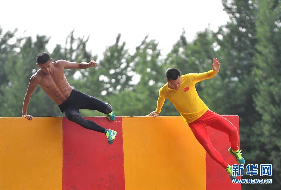 2019年6月28日,八一军事五项队男队员在进行500米障碍跑训练。新华社记者 熊琦 摄