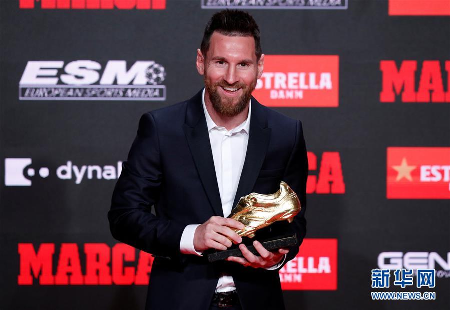 10月16日,梅西手捧金靴奖杯。 当日,西甲巴塞罗那队球员梅西在西班牙巴塞罗那领取了2018-2019赛季欧洲金靴奖,这是他个人职业生涯第六次获得该奖项。 新华社/路透