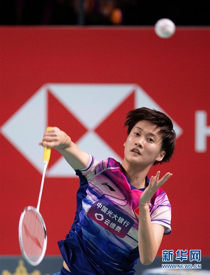 10月16日,中国选手陈雨菲在比赛中回球。 当日,在丹麦欧登塞举行的丹麦羽毛球公开赛女子单打首轮比赛中,中国选手陈雨菲以2比0战胜新加坡选手杨佳敏,进入下一轮。 新华社/路透