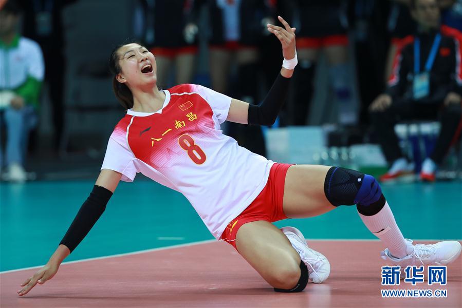 10月17日,中国队球员袁心玥在比赛中。当日,在武汉举行的第七届世界军人运动会女排小组赛A组第二轮比赛中,中国队以3比0战胜巴西队。新华社记者刘续摄