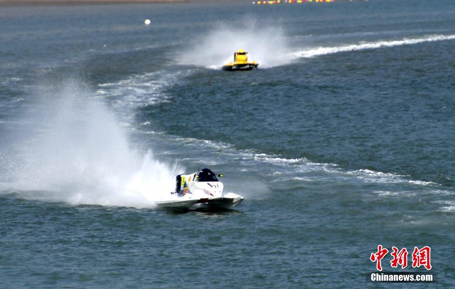 10月19日,2019U.I.M.F1摩托艇世界锦标赛中国大奖赛在厦门五缘湾正式开赛,9支国际赛队的18条F1摩托艇参赛,来自9个国家和地区的18名国际顶级选手在水上演绎“速度与激情”。U.I.M.F1摩托艇世界锦标赛是国际摩托艇联盟旗下最高级别动力艇赛事。 中新社记者 王东明 摄