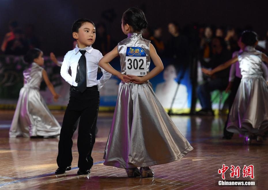 10月19日,云南省第十届体育舞蹈锦标赛总决赛在昆明学院拉开帷幕。图为幼儿园组选手在比赛中。中新社记者 刘冉阳 摄