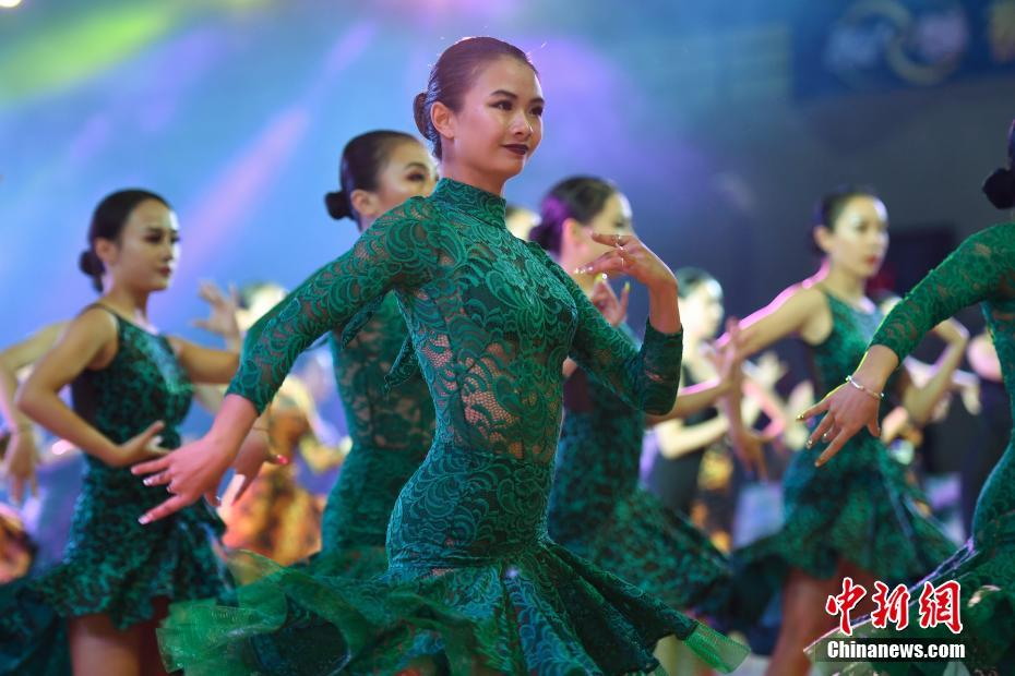10月19日,云南省第十届体育舞蹈锦标赛总决赛在昆明学院拉开帷幕。图为大学专业组选手在比赛中。中新社记者 刘冉阳 摄