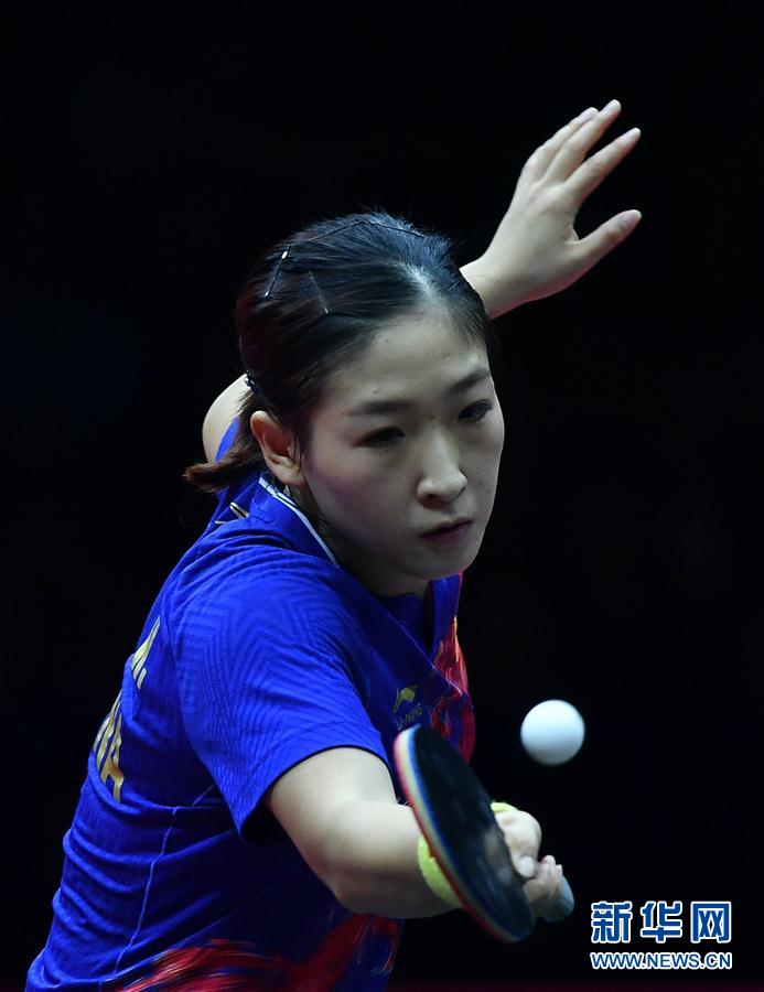 10月20日,刘诗雯在比赛中回球。 当日,在四川成都举行的2019年国际乒联女子世界杯决赛中,中国选手刘诗雯以4比2战胜队友朱雨玲,获得冠军。 新华社记者薛玉斌摄