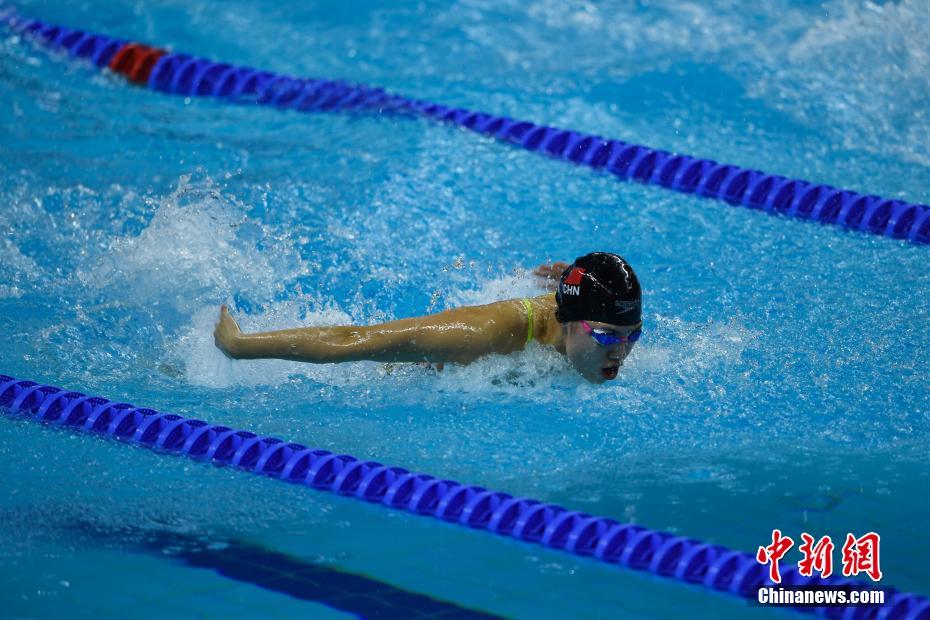 10月20日,第七届世界军人运动会游泳比赛女子100米蝶泳决赛在湖北省武汉市举行,中国选手张雨霏以58秒59的成绩夺得冠军。图为张雨霏在比赛中。中新社记者 何蓬磊 摄