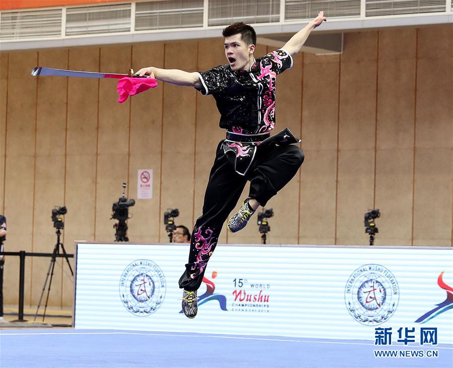 10月20日,马来西亚选手克莱门特·丁在男子刀术项目比赛中。 当日,第十五届世界武术锦标赛首日比赛在上海闵行体育馆举行。 新华社记者方喆摄