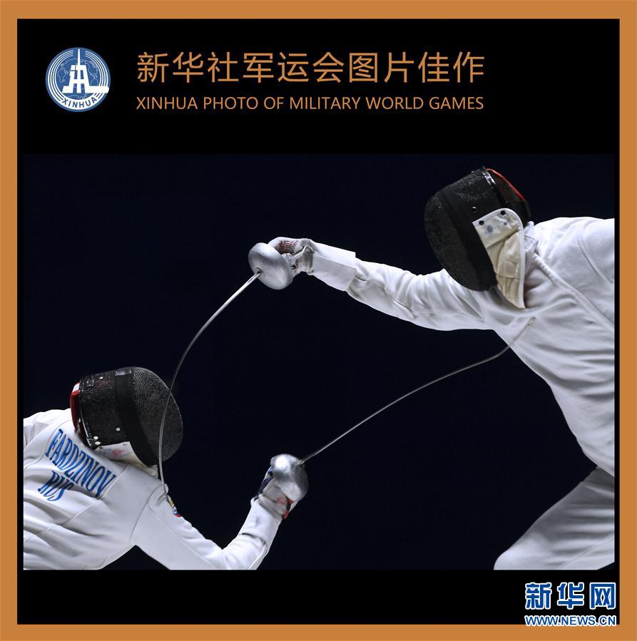 10月20日,乌克兰选手雷兹林(右)与俄罗斯选手法尔济诺夫在比赛中。 当日,在武汉举行的第七届世界军人运动会男子重剑个人赛决赛中,乌克兰选手雷兹林以15比12战胜俄罗斯选手法尔济诺夫,获得冠军。 新华社记者王鹏摄
