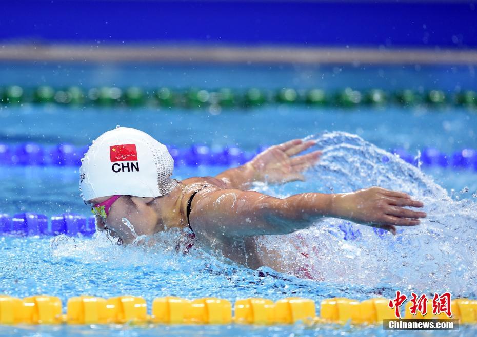 10月21日晚间,第七届世界军人运动会9项游泳决赛在湖北省武汉市举行,中国队获得7个项目冠军,其中打破了女子100米自由泳、男子200米自由泳、女子100米仰泳、男子400米混合泳和男女4x100米自由泳接力5个项目的国际军事体育理事会纪录,创造了女子1500米自由泳的国际军事体育理事会纪录。中国选手张雨涵以2分10秒68的成绩夺得女子200米蝶泳的冠军。图为张雨涵在比赛中。中新社记者 侯宇 摄