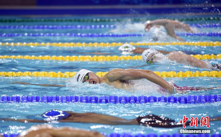 10月21日晚间,第七届世界军人运动会9项游泳决赛在湖北省武汉市举行,中国队获得7个项目冠军,其中打破了女子100米自由泳、男子200米自由泳、女子100米仰泳、男子400米混合泳和男女4x100米自由泳接力5个项目的国际军事体育理事会纪录,创造了女子1500米自由泳的国际军事体育理事会纪录。中国选手季新杰以1分46秒54的成绩夺得男子200米自由泳冠军,并打破国际军事体育理事会纪录。图为季新杰在比赛中。中新社记者 侯宇 摄