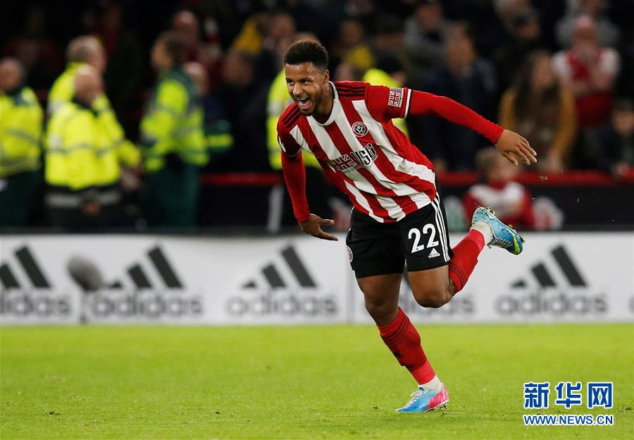 10月21日,谢菲尔德联队球员穆塞在进球后庆祝。 当日,在2019-2020赛季英格兰足球超级联赛第九轮比赛中,谢菲尔德联队主场以1比0战胜阿森纳队。 新华社/路透