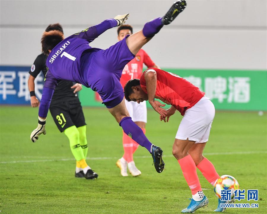 10月23日,日本浦和红钻队守门员西川周作(左)和广州恒大队球员艾克森在比赛中发生碰撞。 当日,在广州举行的2019年亚冠联赛半决赛次回合比赛中,中国广州恒大队主场以0比1不敌日本浦和红钻队,从而以两回合0比3的总比分无缘决赛。 新华社记者刘大伟摄