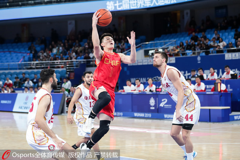 人民网北京10月24日电(马翼) 23日,第七届世界军人运动会篮球项目小组赛,中国男篮80-64大胜卡塔尔男篮,中国队以小组赛四战全胜的战绩,顺利晋级半决赛,将对阵B组第二名立陶宛队。