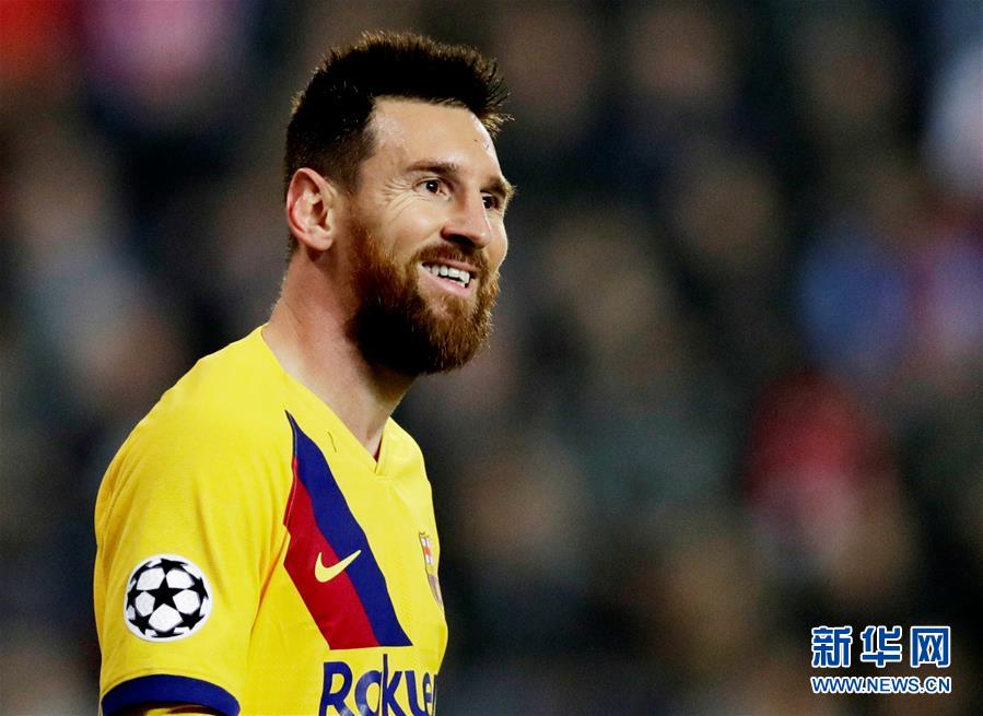 10月23日,巴塞罗那队球员梅西在比赛后。 当日,在2019-2020赛季欧洲足球冠军联赛F组比赛中,西甲巴塞罗那队客场以2比1战胜捷克布拉格斯拉维亚队。 新华社/路透