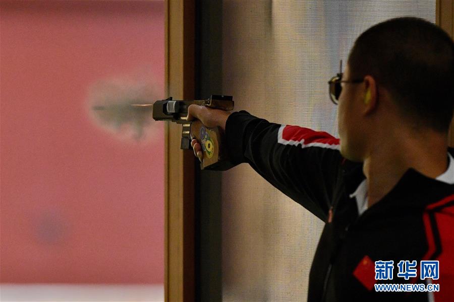 10月24日,中国队选手姚兆楠在男子25米中心发火手枪个人赛中。 当日,在武汉举行的第七届世界军人运动会射击项目男子25米中心发火手枪个人赛中,中国队选手姚兆楠获得银牌。 新华社记者姜克红摄
