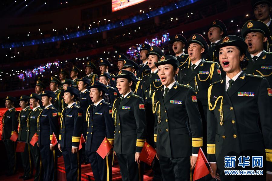 10月27日,中国人民解放军文工团合唱团在闭幕式上表演。 当日,第七届世界军人运动会闭幕式在武汉举行。 新华社记者熊琦摄
