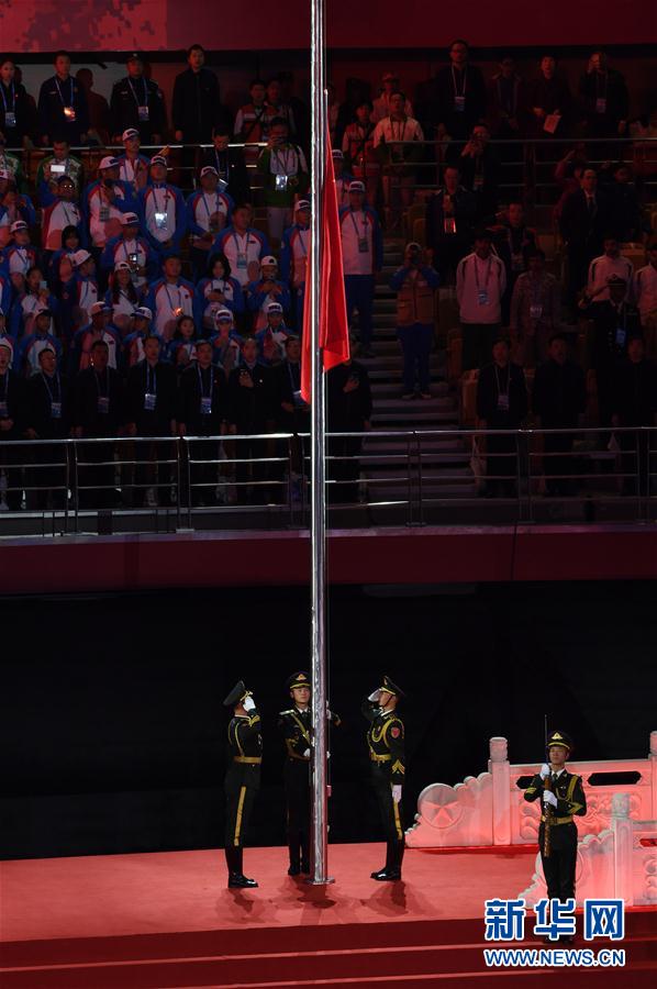 10月27日,第七届世界军人运动会闭幕式在武汉举行。 这是闭幕式上的升国旗仪式(10月27日摄)。 新华社记者范培珅摄