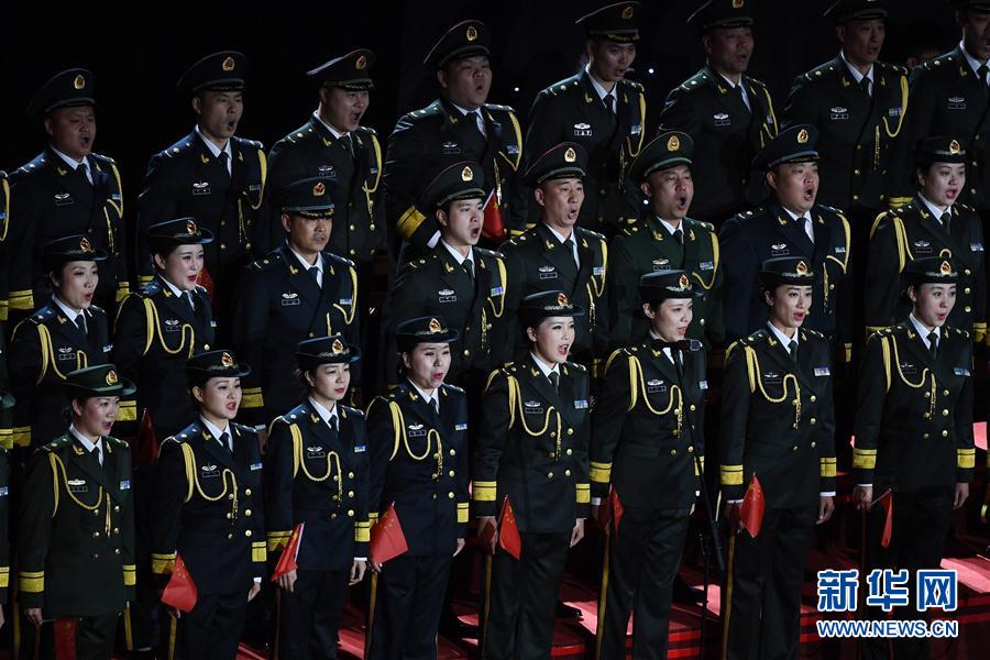 10月27日,中国人民解放军文工团合唱团在闭幕式上表演。 当日,第七届世界军人运动会闭幕式在武汉举行。 新华社记者程敏摄