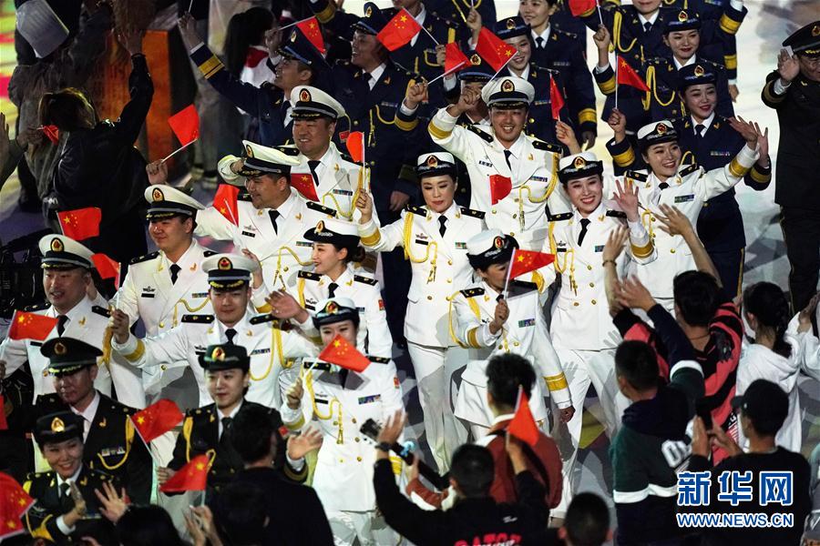 10月27日,中国人民解放军文工团合唱团在闭幕式上入场。 当日,第七届世界军人运动会闭幕式在武汉举行。 新华社记者万象摄