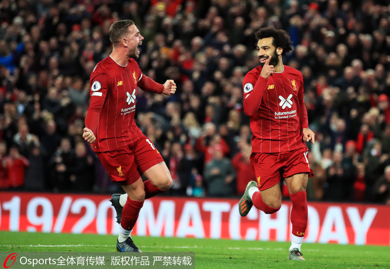 英超-亨德森建功萨拉赫点射 利物浦2-1逆转热刺