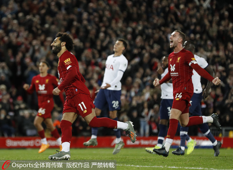 人民网北京10月28日 北京时间今天00:30,2019/20赛季英超第10轮一场焦点战在安菲尔德球场展开争夺,利物浦主场2比1力克热刺,凯恩闪电进球,亨德森扳平,萨拉赫射入点球逆转。利物浦主场全胜仍以6分领跑,跨赛季联赛主场12连胜。