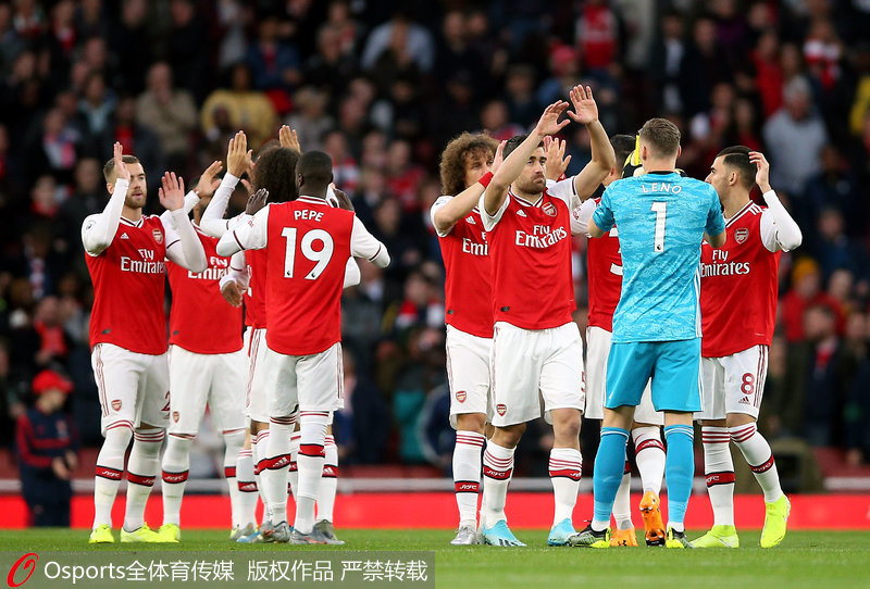 第44分钟,阿森纳队中场快发任意球,佩佩大禁区处射门与立柱擦肩而过,阿森纳队险些扩大比分。