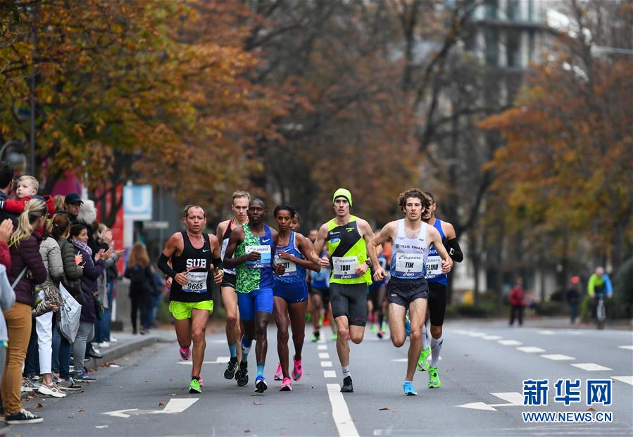 10月27日,参赛选手在比赛中。 当日,第38届法兰克福国际马拉松赛在法兰克福市中心举行。法兰克福是德国举办国际马拉松比赛历史悠久的城市之一,自1981年开始,每年举办一届。 新华社记者 逯阳 摄