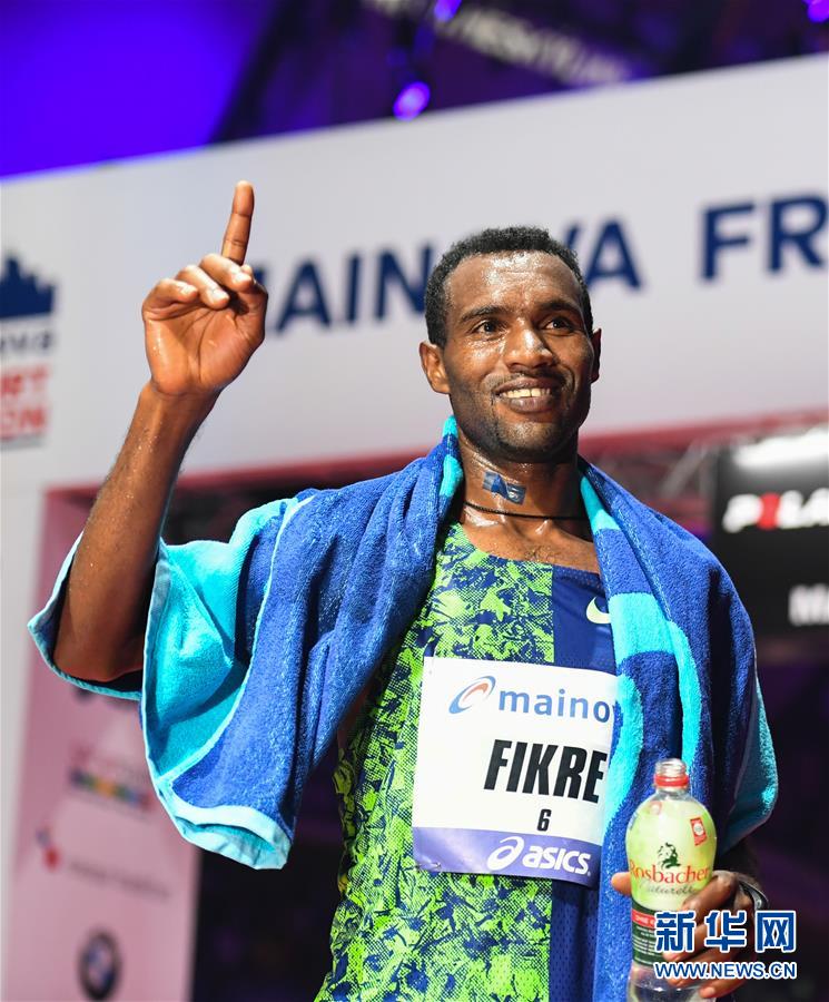 10月27日,埃塞俄比亚选手菲克雷·塔费拉在夺冠后庆祝。菲克雷·塔费拉以2小时07分08秒的成绩夺得男子组冠军。 当日,第38届法兰克福国际马拉松赛在法兰克福市中心举行。法兰克福是德国举办国际马拉松比赛历史悠久的城市之一,自1981年开始,每年举办一届。 新华社记者 逯阳 摄