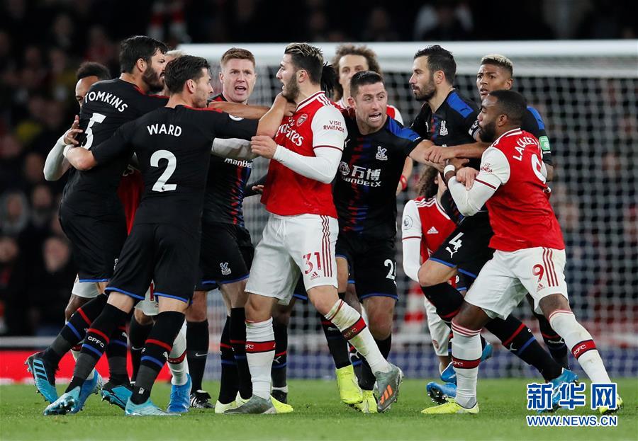 10月27日,双方球员在阿森纳队球员贡多齐防守水晶宫队球员扎哈犯规后爆发冲突。 当日,在2019-2020赛季英格兰足球超级联赛第10轮比赛中,阿森纳队主场以2比2战平水晶宫队。 新华社/路透