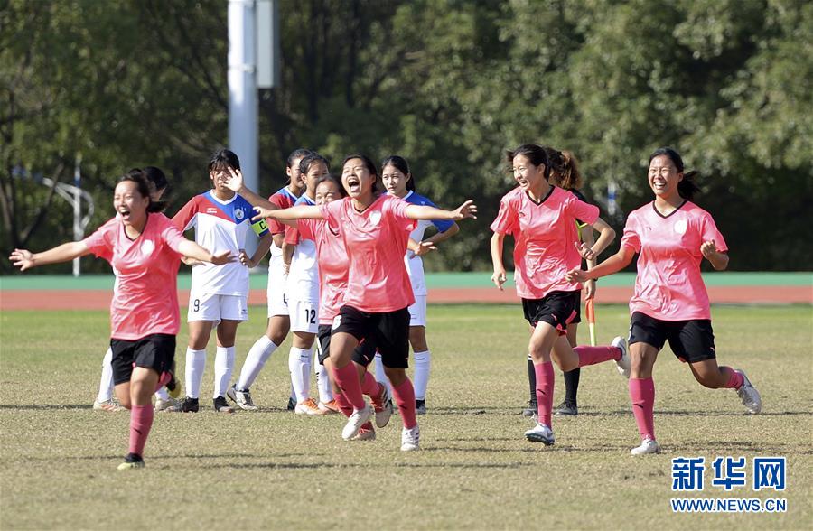 10月30日,郑州市第三十一中学队球员庆祝胜利。 当日,在长沙举行的2019参考消息·萨马兰奇杯中国高中足球锦标赛女子组季军争夺战中,郑州市第三十一中学队与邯郸市第一中学队在常规时间打成1比1平,通过点球大战,郑州市第三十一中学队以总比分4比1取胜,获得季军。 新华社发(陈振海摄)