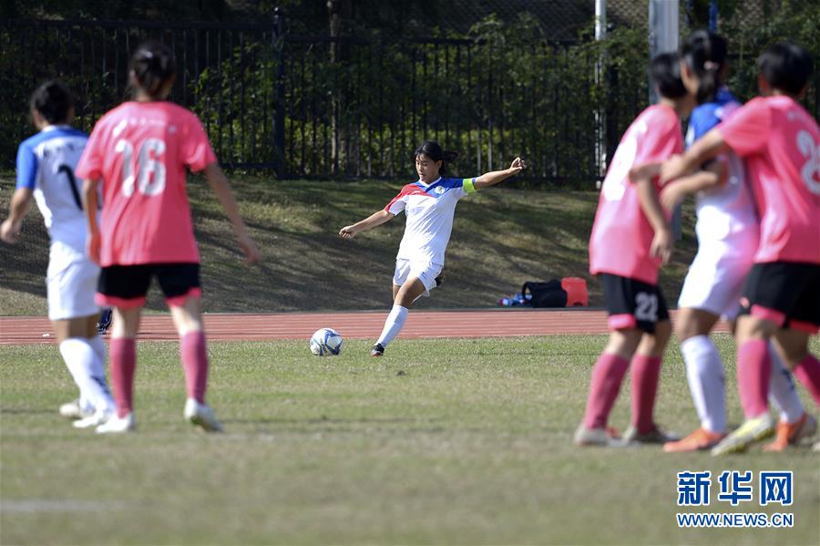 10月30日,邯郸市第一中学队球员王天瑶(中)在比赛中主罚任意球。 当日,在长沙举行的2019参考消息·萨马兰奇杯中国高中足球锦标赛女子组季军争夺战中,郑州市第三十一中学队与邯郸市第一中学队在常规时间打成1比1平,通过点球大战,郑州市第三十一中学队以总比分4比1取胜,获得季军。 新华社发(陈振海摄)