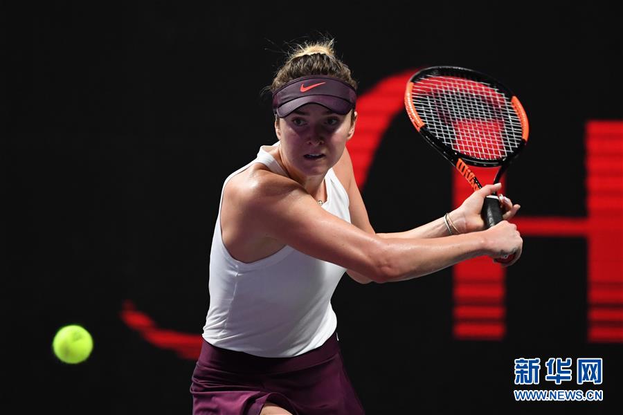 10月30日,斯维托丽娜在比赛中回球。 当日,在2019深圳WTA年终总决赛第四个比赛日女子单打比赛中,乌克兰选手斯维托丽娜以2比0战胜罗马尼亚选手哈勒普。 新华社记者梁旭摄