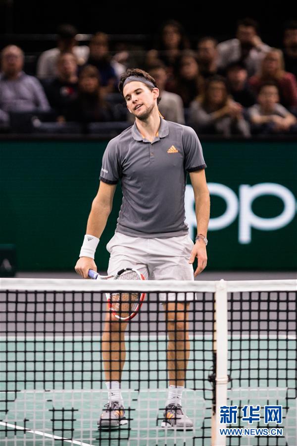 10月31日,奥地利选手蒂姆在比赛中。 当日,在法国巴黎举行的巴黎网球大师赛男单第三轮比赛中,保加利亚选手迪米特洛夫以2比0战胜奥地利选手蒂姆,晋级下一轮。 新华社发(奥雷利安·莫里萨尔摄)