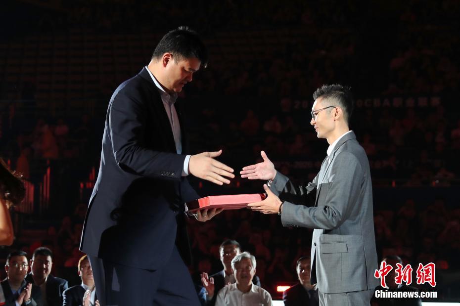 11月2日,上海男篮在CBA新赛季首场比赛开赛前,为球队传奇后卫刘炜举行了退役仪式,并将他的8号球衣永久封存。中国篮协主席姚明也专程赶来,并为刘炜颁发了“中国篮球之队磐石奖”。图为姚明与刘炜握手致意。中新社记者 张亨伟 摄
