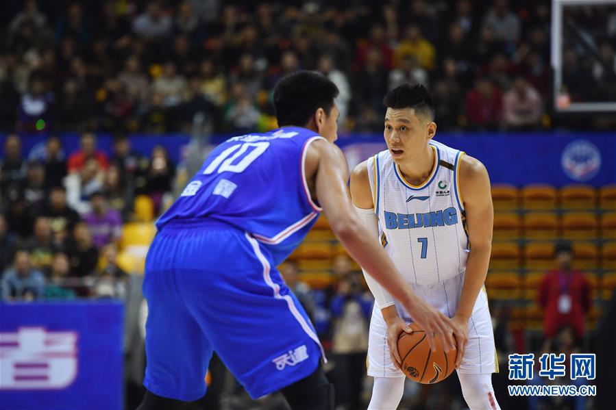 11月3日,北京首钢队球员林书豪(右)在比赛中持球。 当日,在2019-2020中国男子篮球职业联赛常规赛首轮比赛中,北京首钢队客场以103比81战胜天津先行者队。 新华社记者李然摄