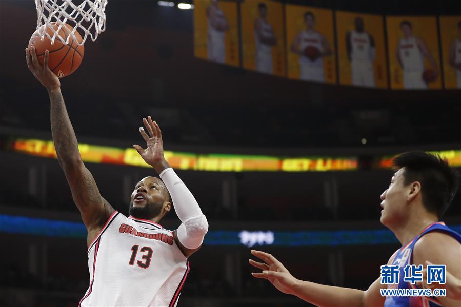 11月5日,广东东莞银行队球员威姆斯(左)在比赛中进攻。 当日,在2019-2020赛季中国男子篮球职业联赛(CBA)常规赛第二轮比赛中,广东东莞银行队主场以118比115战胜四川五粮金樽队。 新华社记者吴鲁摄
