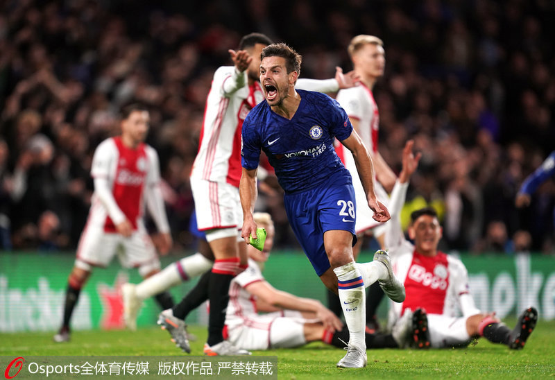 人民网北京11月6日电 北京时间11月6日凌晨,2019/20赛季欧冠第4比赛日H组继续进行,切尔西主场4比4战平阿贾克斯,亚布拉罕和凯帕自摆乌龙,阿贾克斯一度4-1领先,但布林德和费尔特曼接连被罚下,蓝军连入3球追平。切尔西、阿贾克斯和瓦伦西亚同积7分。