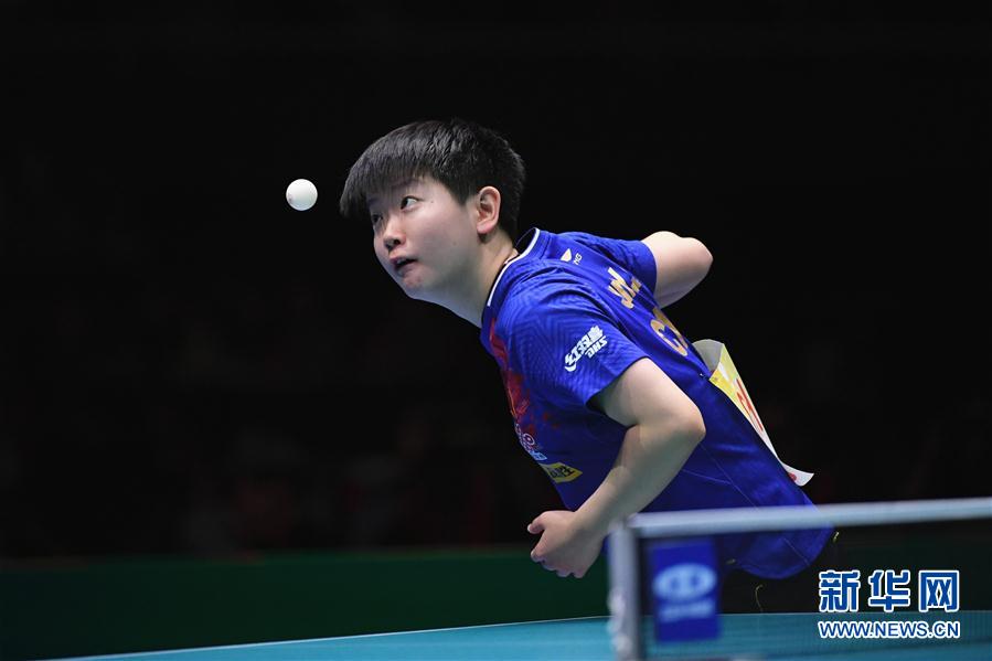 11月10日,中国队选手孙颖莎在单打比赛中发球。最终她以3比2战胜日本队选手伊藤美诚。 当日,在2019年国际乒联团体世界杯女子决赛中,中国队以3比0战胜日本队,获得冠军。 新华社记者华义摄