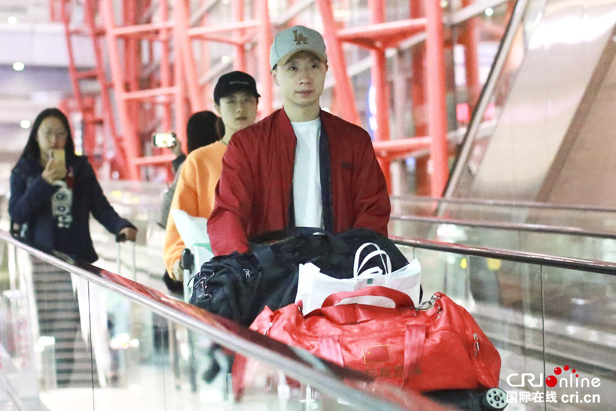 2019年11月11日,北京,国乒团体世界杯载誉归来抵达机场。