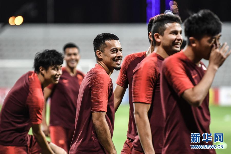 11月13日,中国队球员李可(左三)在训练中。 当日,中国国家男子足球队在阿联酋迪拜进行赛前训练,备战将于11月14日与叙利亚队进行的世预赛亚洲区四十强赛。 新华社记者潘昱龙摄
