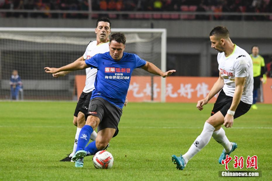 11月16日,欧文(左二)带球突破。当日,2019传奇明星足球挑战赛在长沙举行,由罗纳尔迪尼奥带领的传奇一队以5比2战胜欧文带领的传奇二队。杨华峰 摄