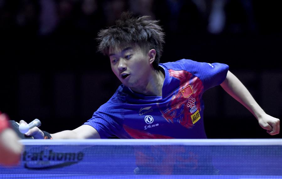 11月17日,赵子豪在比赛中回球。 当日,在奥地利林茨举行的2019国际乒联巡回赛奥地利公开赛男单决赛中,中国选手樊振东以4比0战胜队友赵子豪,获得冠军。 新华社记者郭晨摄