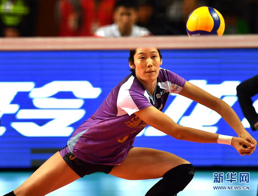 11月19日,天津渤海银行队球员朱婷在比赛中。 当日,在2019-2020赛季中国女排超级联赛第一阶段B组第五轮比赛中,天津渤海银行队以3比0战胜河南银鸽投资队。 新华社记者 李嘉南 摄