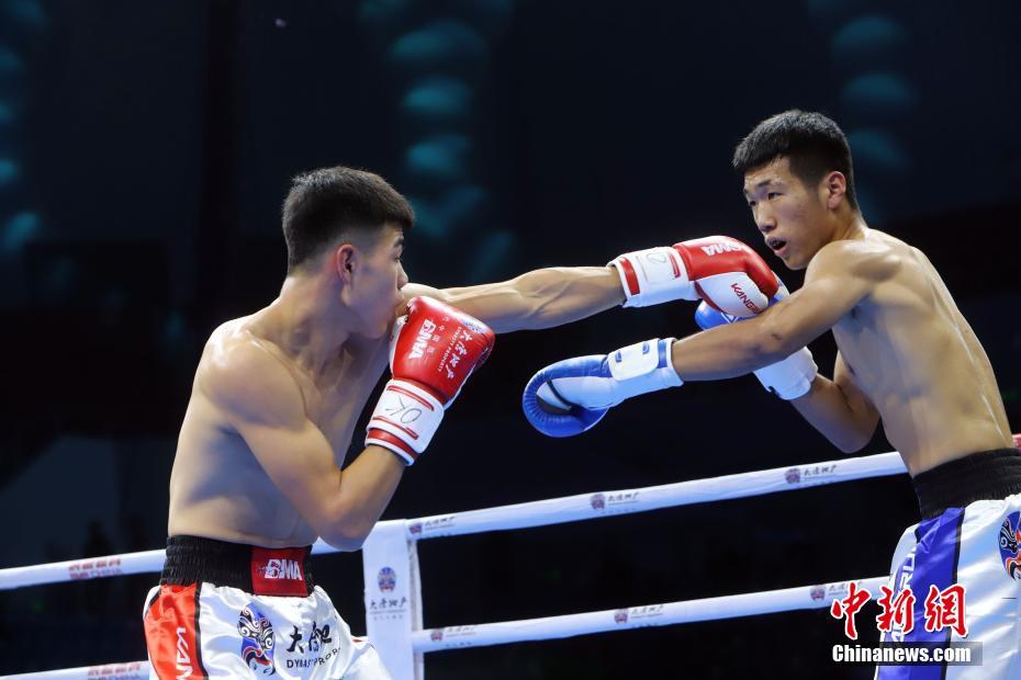 11月23日晚间,2019大唐地产亚洲拳王大满贯资格赛天津站比赛在天津工业大学体育馆落幕,朝鲜选手五战全胜成最大赢家。中国选手发挥则相对一般,与外国选手的几场苦战,均未能取得胜利。图为75公斤级比赛是一场中国德比,由王献志迎战刘佳琦,红角选手刘佳琦(左)胜。 中新社记者 张道正 摄