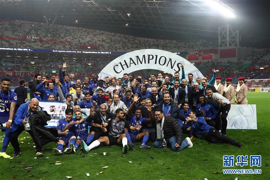 11月24日,阿尔希拉尔队成员在颁奖仪式上庆祝。 当日,在日本琦玉进行的2019赛季亚冠联赛决赛第二回合比赛中,沙特阿拉伯阿尔希拉尔队客场以2比0战胜日本浦和红钻队,最终以3比0的总比分创造队史,首夺亚冠联赛冠军。 新华社/法新