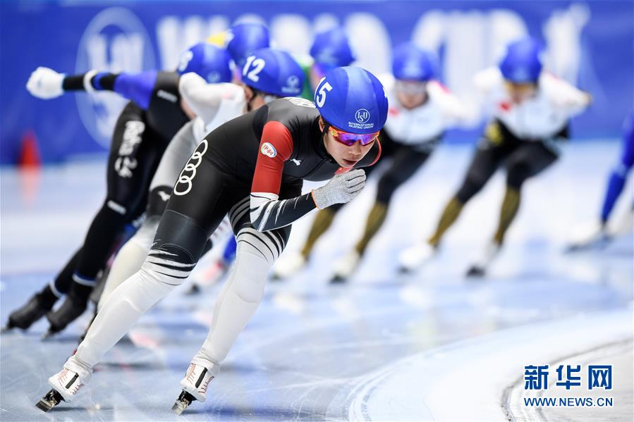 11月24日,中国选手殷琦(前)在比赛中。 当日,在2019-2020赛季国际滑联速度滑冰世界杯波兰站女子集体出发决赛中,中国选手殷琦获得第七名。 新华社发(拉法尔摄)