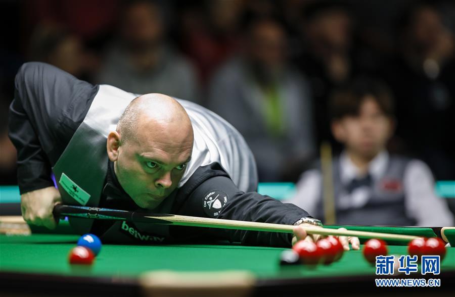 11月26日,英格兰选手宾汉姆在比赛中,最终他以6比4战胜中国选手雷佩凡,首轮晋级。 当日,斯诺克英国锦标赛第一轮比赛在英国约克展开角逐。 新华社记者 韩岩 摄