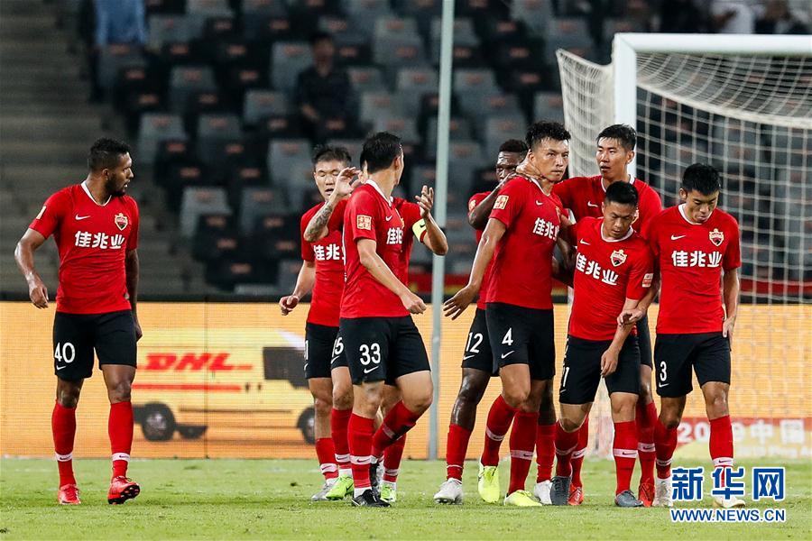 11月27日,深圳佳兆业队球员乔巍(右四)进球后庆祝。 当日,在2019赛季中国足球协会超级联赛第29轮比赛中,深圳佳兆业队主场以3比3战平河南建业队,提前一轮降级。 新华社发(吴志钊摄)